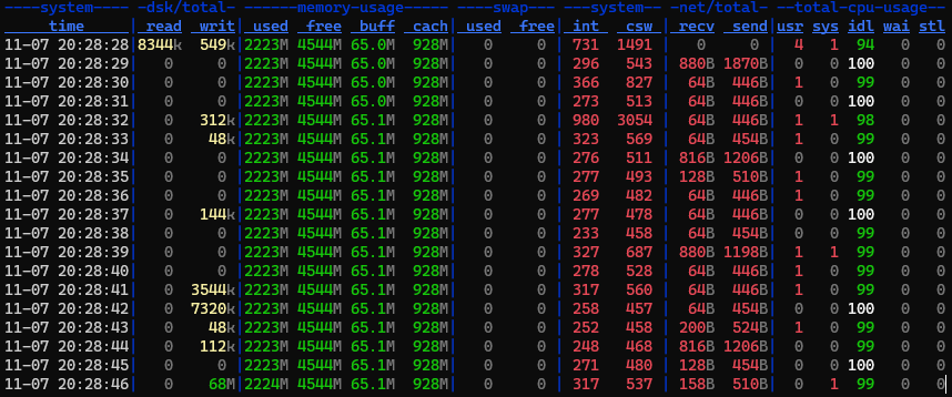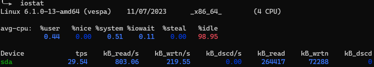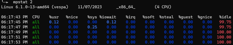 Monitoring tools¶ 2022 Debian htop¶ htop top¶ top ps¶ ps -fe dstat¶ dstat -tdmsync btop¶ btop iostat¶ apt install sysstat iostat mpstat¶ mpstat 2 netstat¶ apt install net-tools mpstat 2
